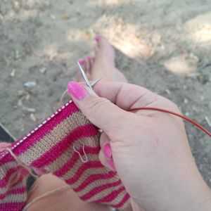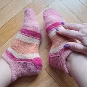 Ponožky můžete plést ve vlaku, v čekárně u lékaře, na dovolené nebo při čekání na děti před kroužkem. Nepotřebujete velký prostor ani složité rozkládání věcí kolem sebe. Stačí vytáhnout pletení, uplést několik řad a zase ho uložit.