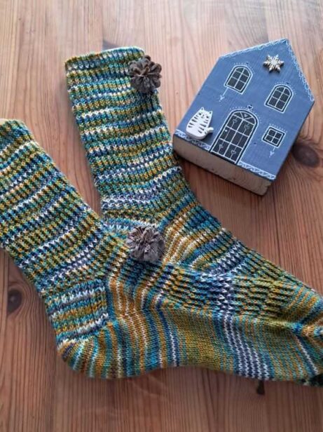 ponožky pletené od špičky s zahnutým lemem, vhodné do tenisek