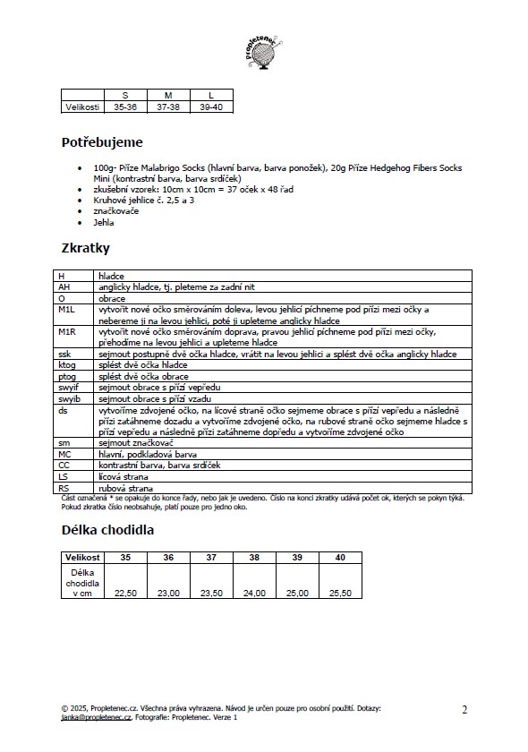 Ponožky Zlomený patent kombinují jednoduchost s pohodlím. Díky patentnímu vzoru mají krásnou strukturu a zároveň se lépe přizpůsobí noze – sedí pevněji než hladce pletené ponožky. Návod je psaný pro pletení zdola nahoru (toe-up) a využívá techniku magické smyčky (Magic Loop), takže vám stačí jen jedna kruhová jehlice. Návod zahrnuje i možnost uplést ponožky s kontrastní špičkou nebo patou, pokud chcete dodat originální vzhled. K dispozici jsou tři velikosti, takže si snadno upletete pár, který padne přesně vám.